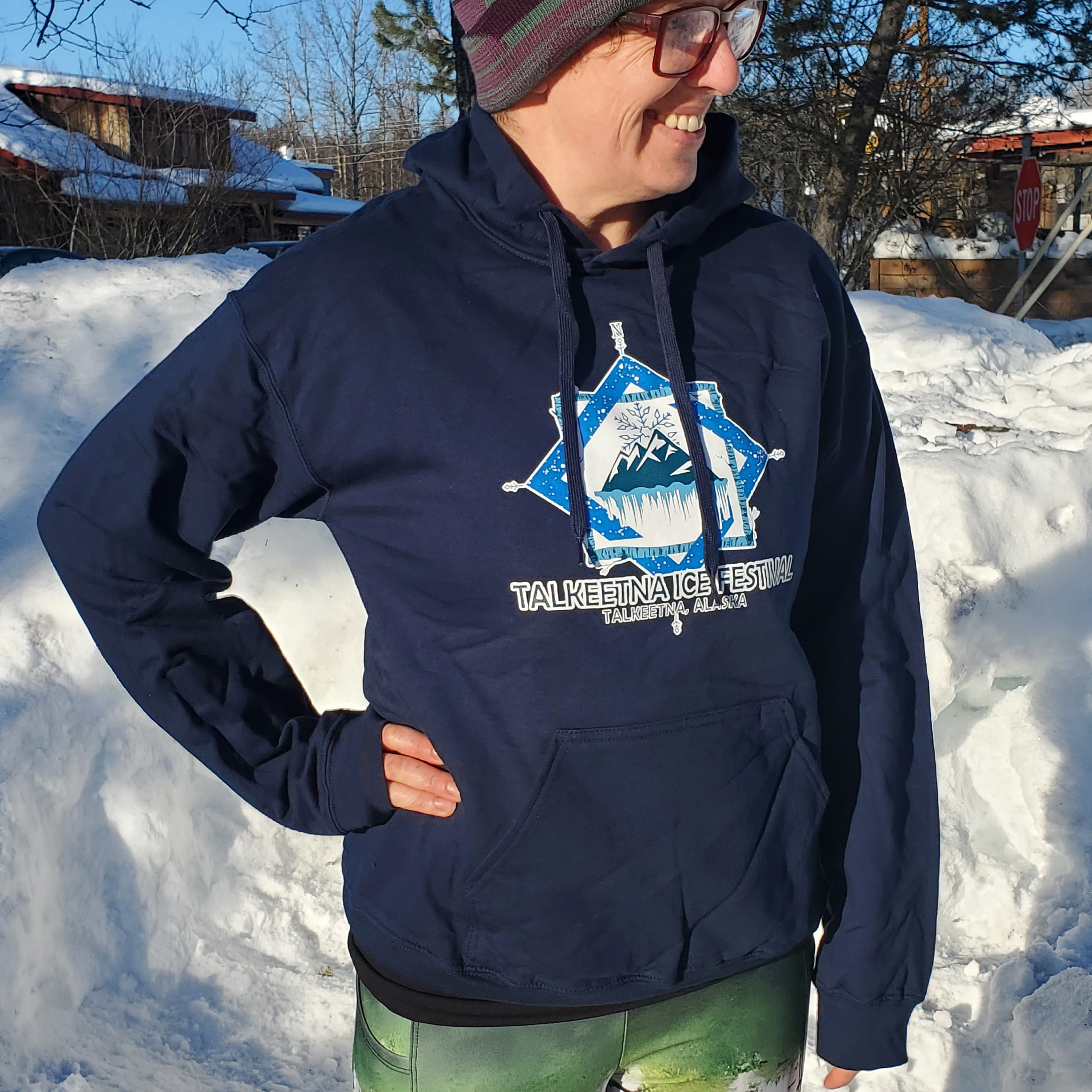 These limited-edition hoodies feature the 2026 Talkeetna Ice Festival artwork printed on a super-soft, deep teal, unisex hoodie.
