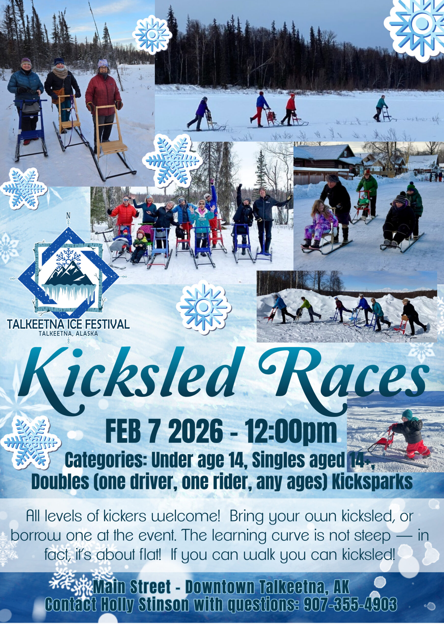 The Talkeetna Chamber of Commerce is hosting a hilariously good time as teams of four strap onto a single set of skis and race tandem! Enter for a chance to win prizes… and ultimate bragging rights!